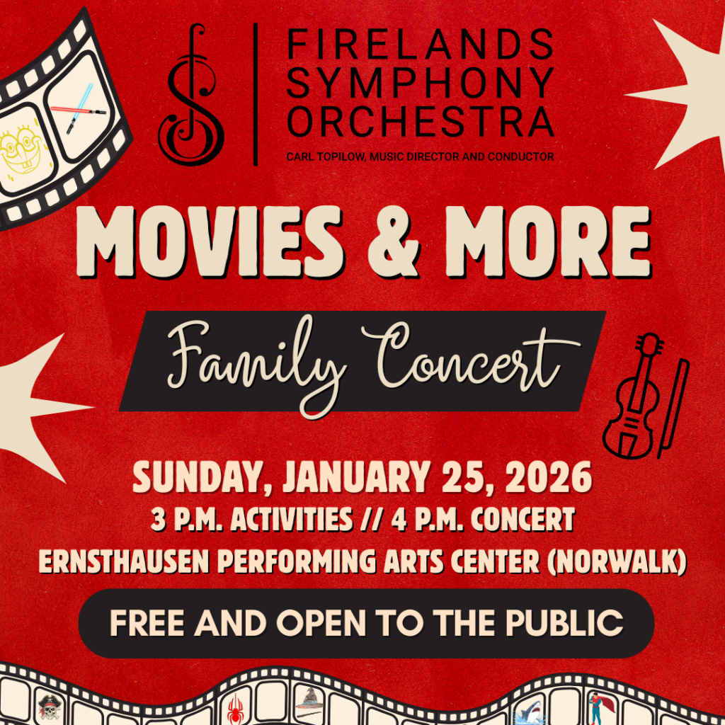 The FSO presents their annual family concert. At 3 p.m., children and their families can enjoy free hands-on crafts and musical activities. At 4 p.m., a family friendly concert will feature songs from movies (such as Star Wars, Jaws, Spider-Man, and more) as well as other fun pieces for all ages!